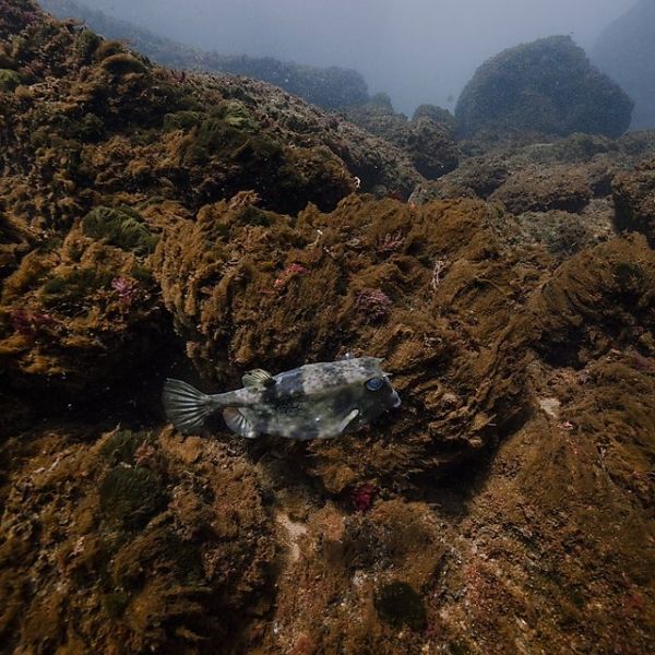 Image: A boxfish swimming above dense mats of diatoms in the high CO2 site along the Shikine volcanic gradient. Credit Nicolas Floc’h