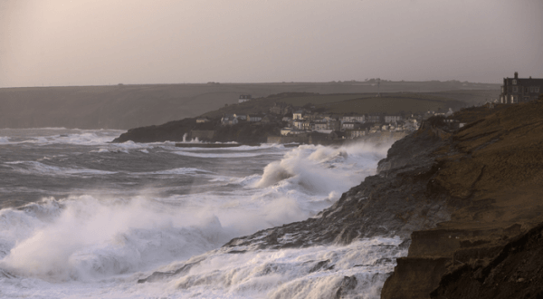 Waves crash into the coastline at Porthleven, Cornwall, during the 2013-14 winter storms (Photo Credit: University of Plymouth)