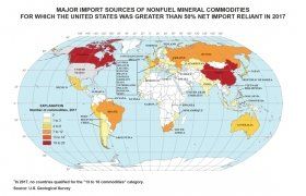 The report from the USGS National Minerals Information Center is the earliest comprehensive source of 2017 mineral production data for the world. It includes statistics on more than 90 mineral commodities that are important to the U.S. economy and national security. It also identifies events, trends and issues in the domestic and international minerals industries. This report covers the full range of nonfuel minerals monitored by the center, not just critical minerals, which were described in the recent USGS Critical Mineral Resources publication; which was released in December of 2017.