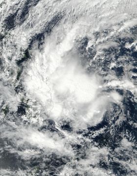 On Feb. 12 at 12:12 a.m. EST (0512 UTC), the Visible Infrared Imaging Radiometer Suite (VIIRS) instrument aboard NASA-NOAA's Suomi NPP satellite captured a visible image of Sanba. A fragmented band of thunderstorms in the western quadrant of the tropical storm was over the central and southern Philippines. The strongest convection and thunderstorms appeared north and east of the low-level center of circulation over the Philippine Sea. The image was created at NASA's Goddard Space Flight Center in Greenbelt, Md.