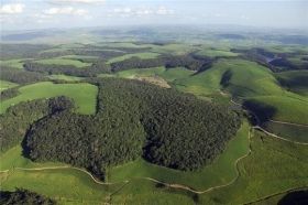 Image: The aerial photo shows forest fragments of the Brazilian Atlantic rainforest in Northeastern Brazil (Mata Atlântica), surrounded by sugar cane plantations. (Credit: Mateus Dantas de Paula)