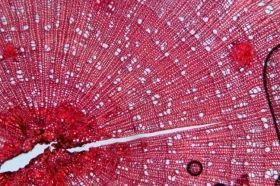 Image: Microscopic imaging reveals the pattern of annual rings in shrub stems, which the researchers used to determine that shrub growth is controlled by temperatures in June, the first month of the brief arctic growing season. (Credit: Daniel Ackerman)