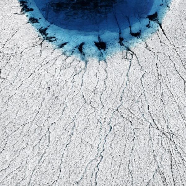Image: Melting of Greenland ice sheet forms lakes that drain in summer. (Credit: Timo Lieber)