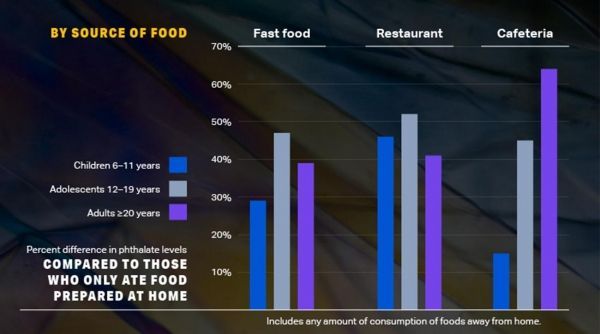 The study is the first to compare phthalate exposures in people who reported dining out to those more likely to enjoy home-cooked meals. People who reported consuming more restaurant, fast food and cafeteria meals had phthalate levels that were nearly 35 percent higher than people who reported eating food mostly purchased at the grocery store, according to the study.