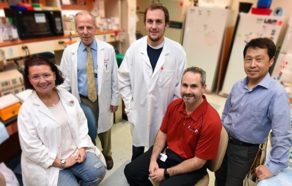 Image: (from left) Dr. Julia E. Brittain, Dr. Neal L. Weintraub, Tyler W. Benson, Dr. Ryan A. Harris and Dr. Ha Won Kim photo taken in the Medical College of Georgia's Vascular Biology Center Lab. (Credit: Phil Jones, Senior Photographer, Augusta University)