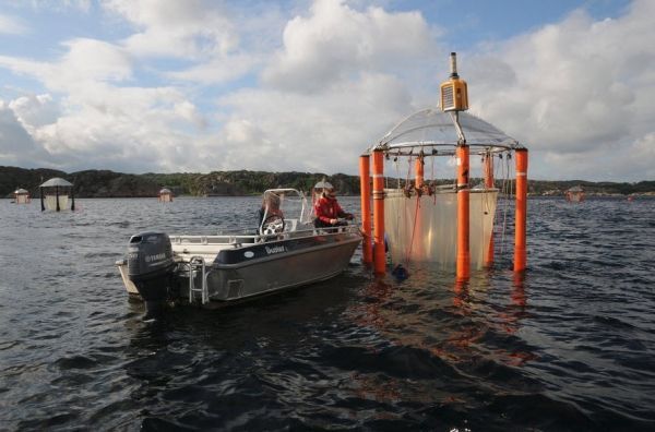 Photo: The scientists tested the response of young herring to ocean acidification by rearing them in a complete food web under present and future CO2 conditions in the KOSMOS mesocosms.