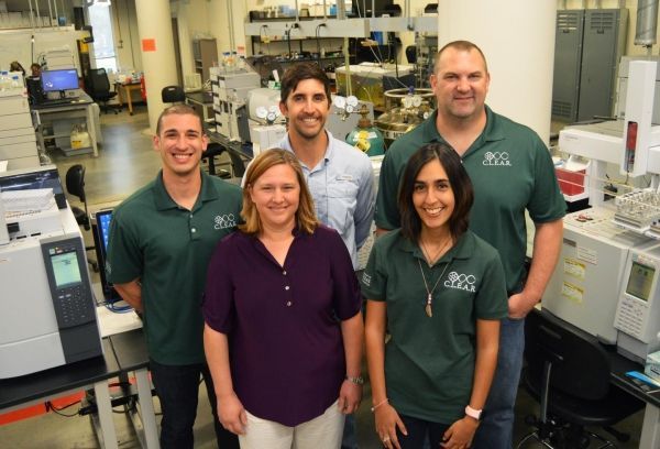Image: CLEAR team: Front row: Tiffany Liden and Inês Santos Back row: Manny Varona-Torres; Zacariah Hildenbrand, Kevin Schug. (Credit: UTA)