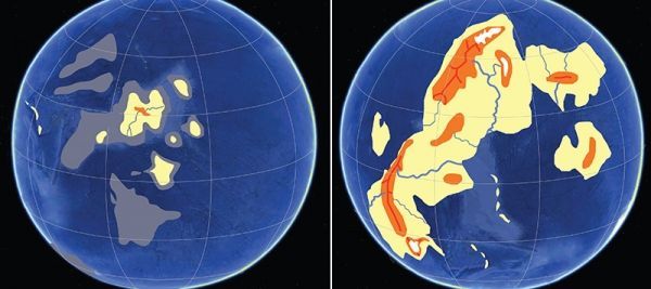 Image: Before and After: How Earth's land elevations may have looked before and after the Great Oxygenation Event (Courtesy of Ilya Bindeman)
