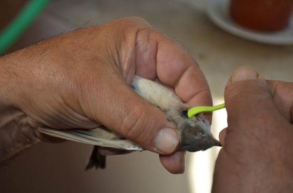 Image: Removal of tick from Common whitethroat (Sylvia communis) caught in mist net at Capri, Italy, by ornithologist Dario Piacentini. (Credit: Tove Hoffman)