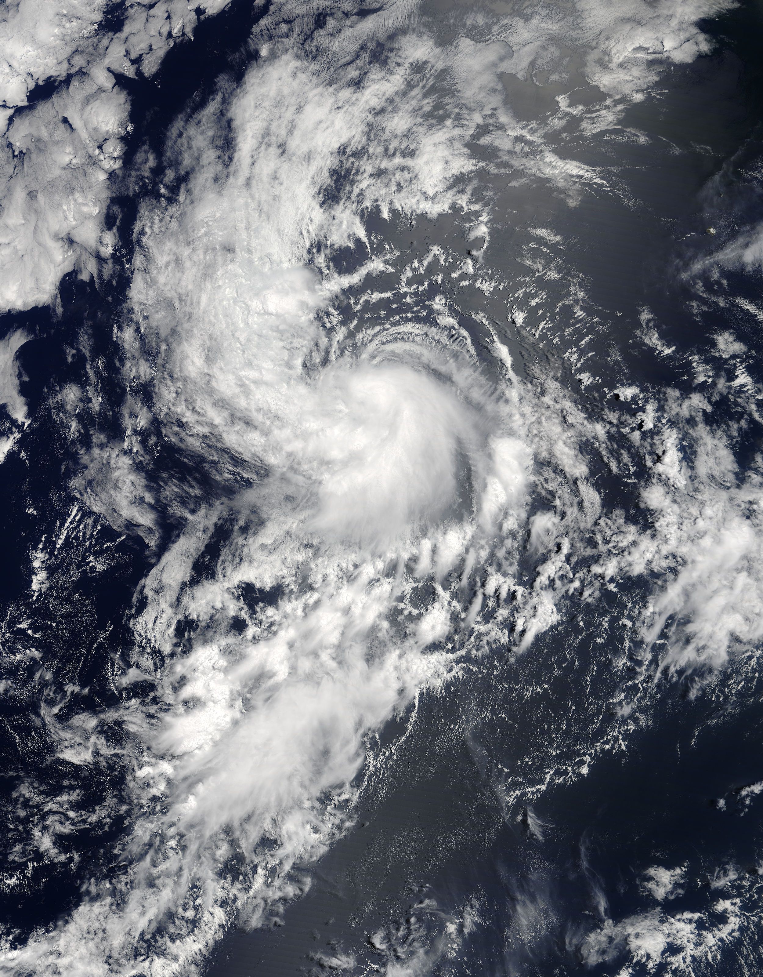 On June 24, the Moderate Resolution Imaging Spectroradiometer or MODIS instrument aboard NASA’s Terra satellite captured a visible image of Tropical Storm Daniel at 2:30 p.m. EDT (1830 UTC), when it was off the west coast of Mexico. The image showed a small, concentrated area of strong storms around the center of circulation with bands of thunderstorms feeding into the center.