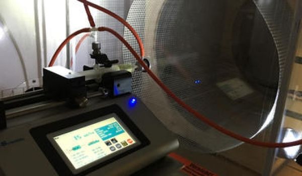 Image: The jet erupting from the end of the needle elongates into a fiber, and the ethanol and acetic acid used as solvents will evaporate. The fibers are collected on the grounded grid at the end of the cylinder forming a nonwoven white sheet like a silk paper. Lastly, the fibres collected from the grid will be burned in air to remove organic polymer. CREDIT: Riitta-Leena Inki