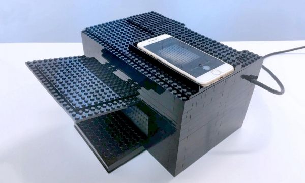 Image: Made from Lego bricks and a smart phone, a device is connected to free software and utilizes the phone's camera to identify and detect nerve agents, like VX and sarin. (Credit: University of Texas at Austin)