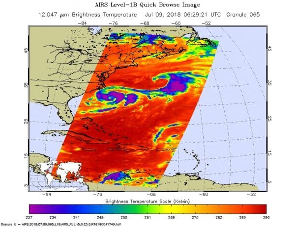 Tropical Storm Chris was strengthening when NASA’s Aqua satellite passed over the U.S. Eastern Seaboard on July 9. Aqua analyzed Tropical Storm Chris in infrared light.