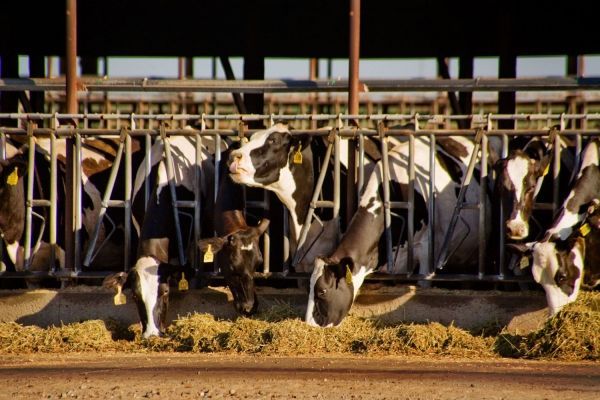 Image: Holstein cows feeding at a dairy farm in Merced, California. MARMADUKE ST. JOHN / ALAMY