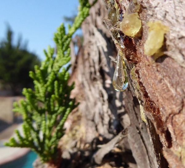 The exact science of tree sap transport has puzzled plant physiologists for many years. Sap’s migration throughout tree trunks and branches is linked heavily to transpiration, the movement and subsequent evaporation of moisture from plants. As carbon dioxide diffuses inward from the air to plant leaves, a vapor pressure deficit between the leaf interior and surrounding atmosphere causes evaporation. This generates tension within leaf cell walls that is then transmitted via sap to tracheids — conductive hollow wood cells with vertical grooves that comprise the trunk, stem, and branches of trees and are collectively called sapwood. The resulting negative sap pressure draws water from roots to leaves, sometimes to heights of over 300 feet.