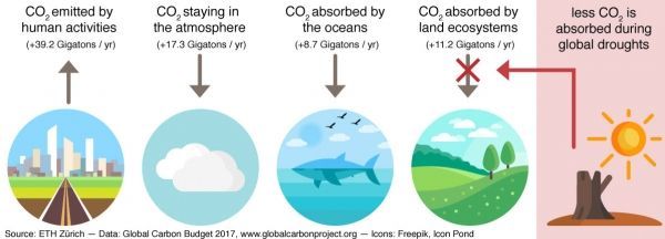 Land ecosystems absorb on average 30% of anthropogenic CO2 emissions, thereby tempering the increase of CO2 concentration in the atmosphere. But plants need water to grow. When a drought occurs, and soils dry out, plants reduce photosynthesis and breathe less in order to save water and preserve their tissues. As a consequence, they are no longer able to capture carbon dioxide from the surrounding air and more CO2 remains in the air. While this effect can be easily observed in the lab, measuring its impact on the whole planet has proved quite difficult. One of the greatest challenges has been to measure where and how often droughts occur globally. In a new study, Vincent Humphrey, climate researcher in the lab of Sonia Seneviratne, Professor for Land-Climate Dynamics at ETH Zurich, used innovative satellite technology to measure the global sensitivity of ecosystems to water stress. The study was carried out in collaboration with the Laboratoire des Sciences du Climat et de l'Environnement (France) and the University of Exeter (United Kingdom).