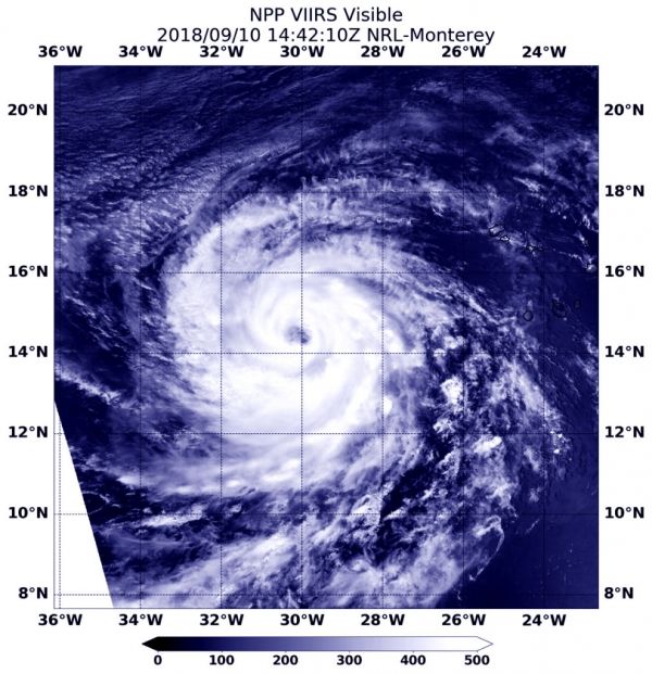 On Sept. 10 at 10:42 a.m. EDT (1442 UTC) the Visible Infrared Imaging Radiometer Suite (VIIRS) instrument aboard NASA-NOAA’s Suomi NPP satellite captured visible image of Hurricane Helene. VIIRS imagery showed the eye was about 20 nautical miles wide.