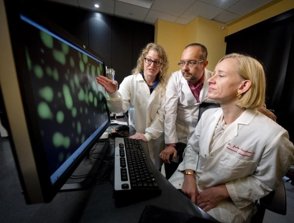 Image: Jill Bouchard, Ph.D., Joel Otero, Ph.D., and Tanja Mittag, Ph.D. were studying SPOP initially to better understand its role in the mechanism of protein degradation, but the investigation became more complicated. (Credit: St. Jude Children's Research Hospital / Ann Margaret Hedges)