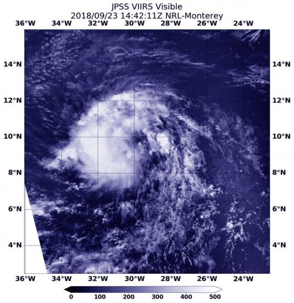 Tropical Storm Kirk formed on Saturday, Sept. 22. By Monday, Sept. 24, Kirk lacked the closed circulation that is a prerequisite for tropical cyclone status. The NOAA-20 satellite provided a visible image of the storm at its peak.