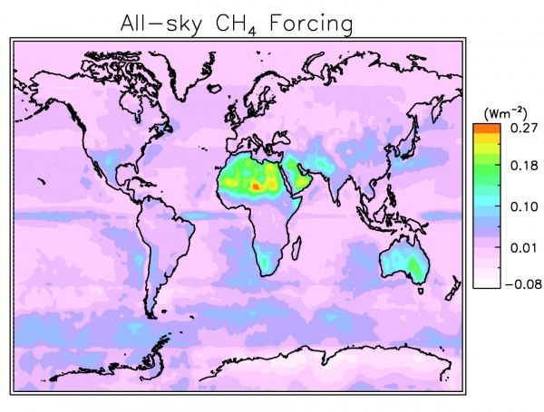 Scientists investigating how human-induced increases in atmospheric methane also increase the amount of solar energy absorbed by that gas in our climate system have discovered that this absorption is 10 times stronger over desert regions such as the Sahara Desert and Arabian Peninsula than elsewhere on Earth, and nearly three times more powerful in the presence of clouds.