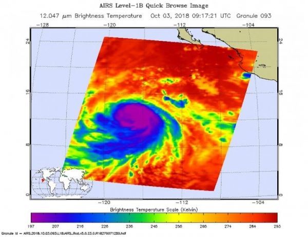 Infrared light provides scientists with temperature data and that’s important when trying to understand the strength of storms. NASA’s Aqua satellite provided those cloud top temperatures of Category 4 Hurricane Sergio in the Eastern Pacific Ocean.