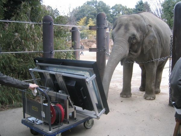 Irie and her colleagues developed a new method to test how well the animals can judge relative quantity. They successfully trained a 14-year old Asian elephant called Authai from the Ueno Zoo in Japan to use a computer-controlled touch panel. The programme was specifically designed to examine the cognition of elephants, so that any unintended factors potentially influencing the results could be ruled out. Authai was presented with a relative numerosity judgment task on the screen, and then had to indicate with the tip of her trunk which one of the two figures shown to her at a time contained more items. These ranged from 0 to 10 items, and contained pictures of bananas, watermelons and apples. The fruit were not all presented in the same size, to ensure that Authai did not make her choices purely on the total area that was covered with illustrations per card.