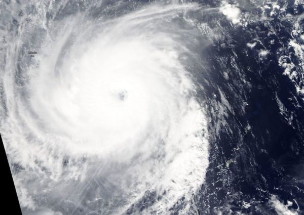 On Oct. 25 at 1:30 p.m. CHST (local time, Guam) the Moderate Resolution Imaging Spectroradiometer or MODIS instrument aboard Aqua captured a visible image of Yutu. The MODIS image showed that large typhoon Yutu continued to remain symmetric with an open 19 nautical-mile-wide eye surrounded by very thick bands of powerful thunderstorms circling the center. At the time of the image, Yutu had passed and cleared Guam.