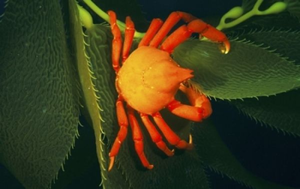 Image: The loss of kelp forests from destructive storms decreases habitat for species like this kelp crab. CREDIT: Ron McPeak