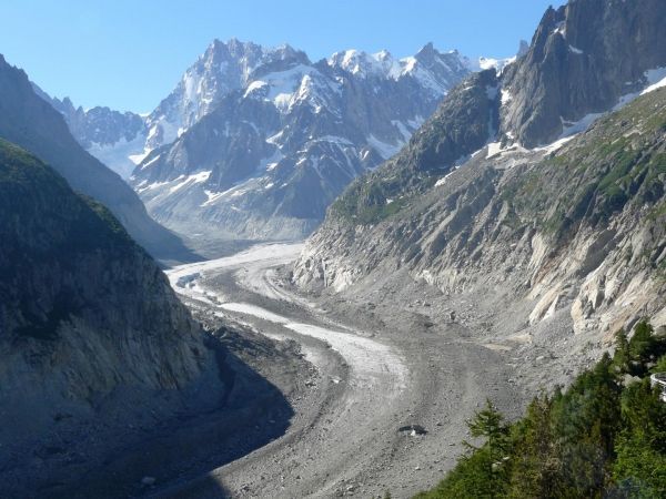 Image: The Mer de Glace ("Sea of Ice") is the biggest glacier in France and the forth largest of the European Alps. It carries a substantial amount of rock debris on its surface. (Credit: Dirk Scherler/GFZ)