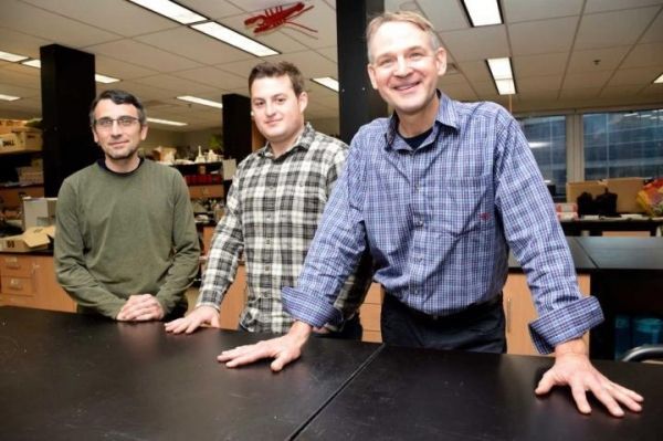Image: From left: Prof Frédéric Laberge, PhD student Caleb Axelrod and Prof. Beren Robinson (Credit: University of Guelph)