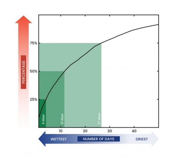 Currently, half of the world's measured precipitation that falls in a year falls in just 12 days, according to a new analysis of data collected at weather stations across the globe.