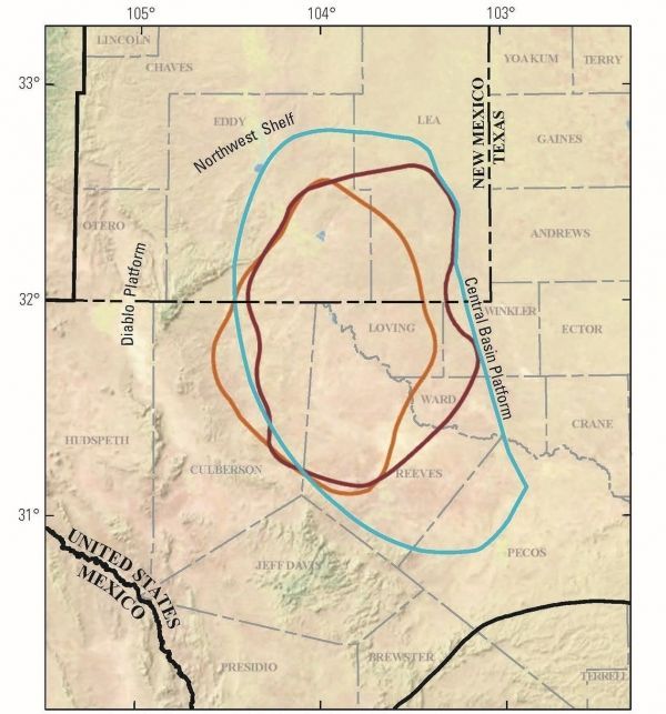 WASHINGTON - Today, the U.S. Department of the Interior announced the Wolfcamp Shale and overlying Bone Spring Formation in the Delaware Basin portion of Texas and New Mexico’s Permian Basin province contain an estimated mean of 46.3 billion barrels of oil, 281 trillion cubic feet of natural gas, and 20 billion barrels of natural gas liquids, according to an assessment by the U.S. Geological Survey (USGS). This estimate is for continuous (unconventional) oil, and consists of undiscovered, technically recoverable resources.