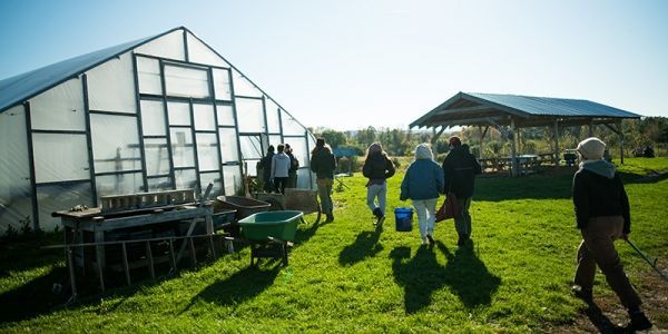 Senior environmental studies major Nell Carpenter is holding court, in a friendly, peer-to-peer kind of way, with eight fellow students in her PSS 212, Advanced Agroecology class at Bread and Butter Farm in Shelburne, where the group will be taking soil samples as part of a weekly on-farm lab that's a feature of the course.