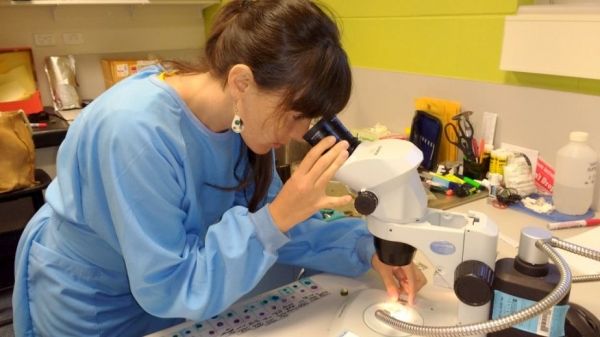 Image: Dr Deborah Apgaua studying samples from trees subject to artificial drought. CREDIT: James Cook University