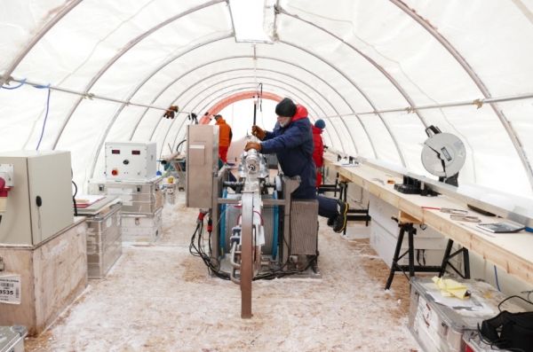 Photo: The drill tent on Skytrain Ice Rise. CREDIT: BAS