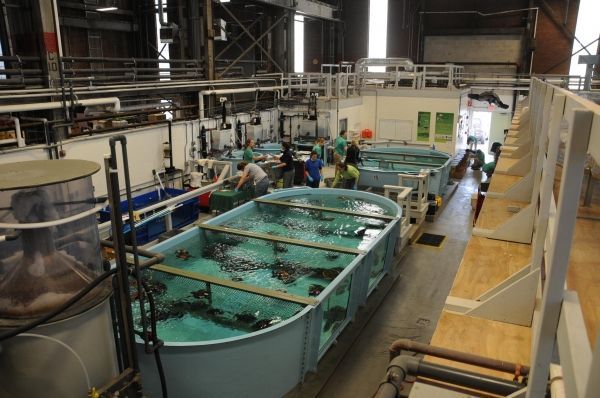 Photo: Sea turtle rehabilitation tanks at the New England Aquarium. Photo courtesy of Connie Merigo.
