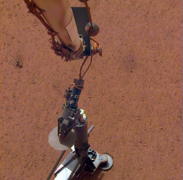 Image: NASA's InSight lander set its heat probe, called the Heat and Physical Properties Package (HP3), on the Martian surface on Feb. 12. (Credit: NASA/JPL-Caltech/DLR)