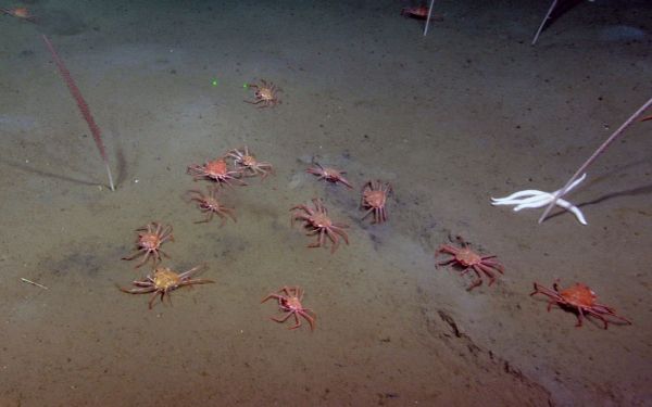Researchers have documented a group of tanner crabs vigorously feeding at a methane seep on the seafloor off British Columbia – one of the first times a commercially harvested species has been seen using this energy source.