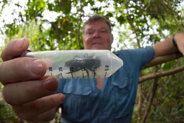 Image: This is Simon Robson, honorary professor of biology at the University of Sydney and Central Queensland University in Australia, with Wallace's giant bee (Megachile pluto). (Credit: © Clay Bolt : claybolt.com)