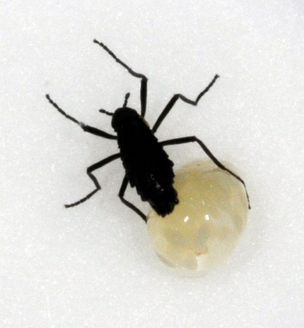 Photo: The Antarctic fly Belgica antarctica in lab conditions lays eggs in a thick gel that helps protect them from the elements. A UC study found the flies were uniquely adapted to survive freezing and thawing. CREDIT: UC Biology
