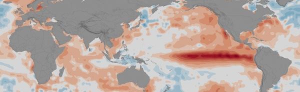 Image: Increased sea surface temperatures in the equatorial Pacific Ocean characterizes an El Niño, which is followed by weather changes throughout the world. (Credit: NASA Goddard's Scientific Visualization Studio)