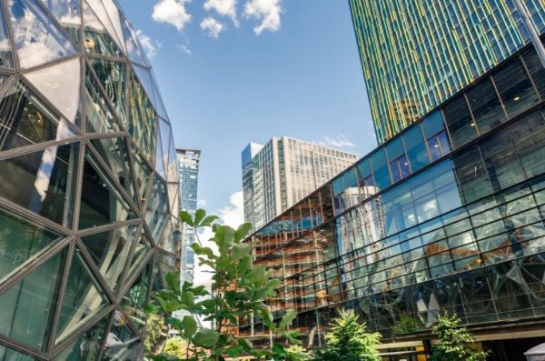 Image: When Amazon announced plans to bring its headquarters (seen here) to Seattle a decade ago, it promised eco-friendly infrastructure and encourages a sustainability ethos to go along with it. But according to new research from Penn and others, its arrival likely led to gentrification and stable or increased carbon emissions. CREDIT: University of Pennsylvania