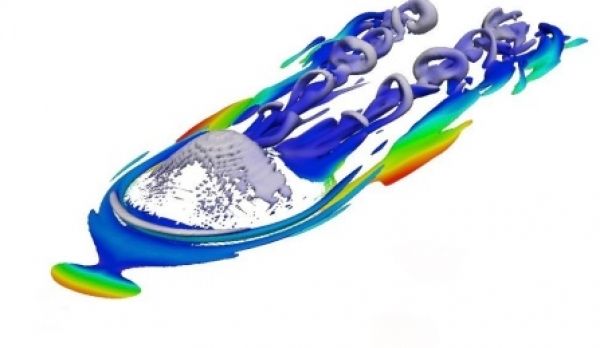 Image: The image above is a 3D computer simulation of air flowing over a hill creating turbulence at transonic speed. The ring-like features are eddies of air. Credit: James Chen / University at Buffalo.