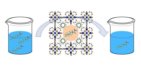 In a study in the American Chemical Society journal ACS Sustainable Chemistry and Engineering, Rice University researchers Michael Wong, Chelsea Clark and colleagues showed that a highly porous, Swiss cheese-like nanomaterial called a metal-organic framework (MOF) was faster at soaking up PFOS from polluted water, and that it could hold more PFOS, when additional nanometer-sized holes (“defects”) were built into the MOF.