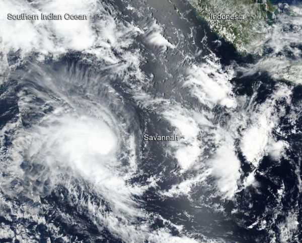 Tropical Cyclone Savannah continued to move in southerly direction in the Southern Indian Ocean and move away from Indonesia. NASA-NOAA’s Suomi NPP satellite provided a visible image of the storm. Savannah is no threat to land areas.