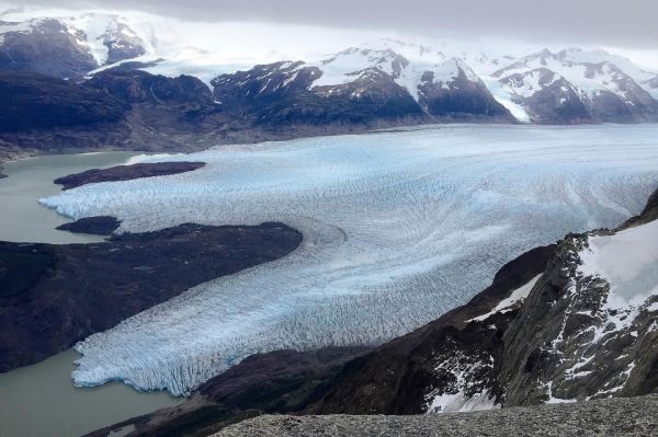 Image: This is an an aerial view of Grey Glacier, part of the Southern Patagonia Ice Field. Researchers obtained their data from the forward tip of the glacier. (Credit: S. Sugiyama, et al., Underwater Ice Terrace Observed at the Front of Glaciar Grey, a Freshwater Calving Glacier in Patagonia, Geophysical Research Letters, February 12, 2019)