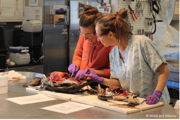 Observers deployed by the North Pacific, Pacific Islands and At-Sea Hake Observer Programs collect seabird bycatch. NOAA’s National Seabird Program works with the nonprofit organization Oikonos to conduct seabird necropsies. Collection of albatross, shearwater, and fulmar carcasses would be impossible without the cooperation of fishermen, observers, and observer program staff members.