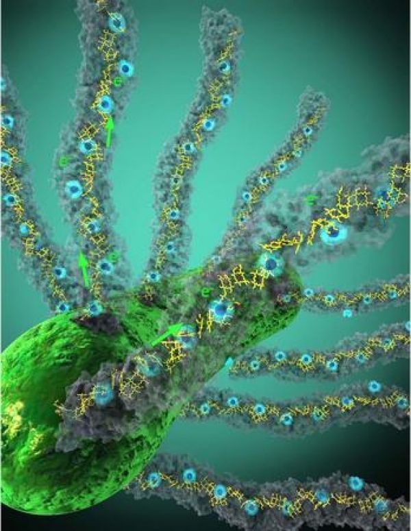 Deep in the ocean or underground, where there is no oxygen, Geobacter bacteria “breathe” by projecting tiny protein filaments called “nanowires” into the soil, to dispose of excess electrons resulting from the conversion of nutrients to energy.