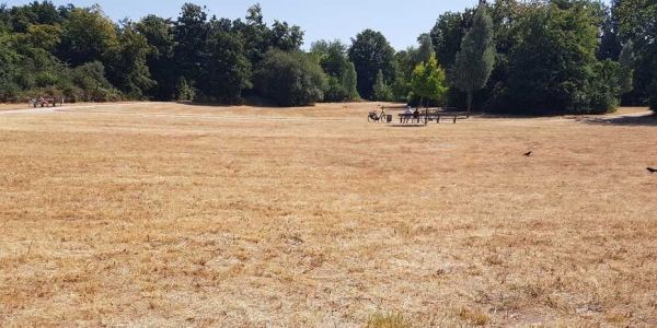 Photo: Withered meadow near Kaarst, Germany at the beginning of July: The 2018 heat wave lasted from May to July and covered large parts of the northern hemisphere. (Photograph: Mimikry11, CC BY-SA 3.0, https://commons.wikimedia.org)