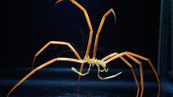 Photo: Giant sea spider, Colossendeis robusta, used in the thermal tolerance righting assays in experiments done by Shishido and colleagues at McMurdo Station, Antarctica. Photo by Tim Dwyer, courtesy of ARCUS.